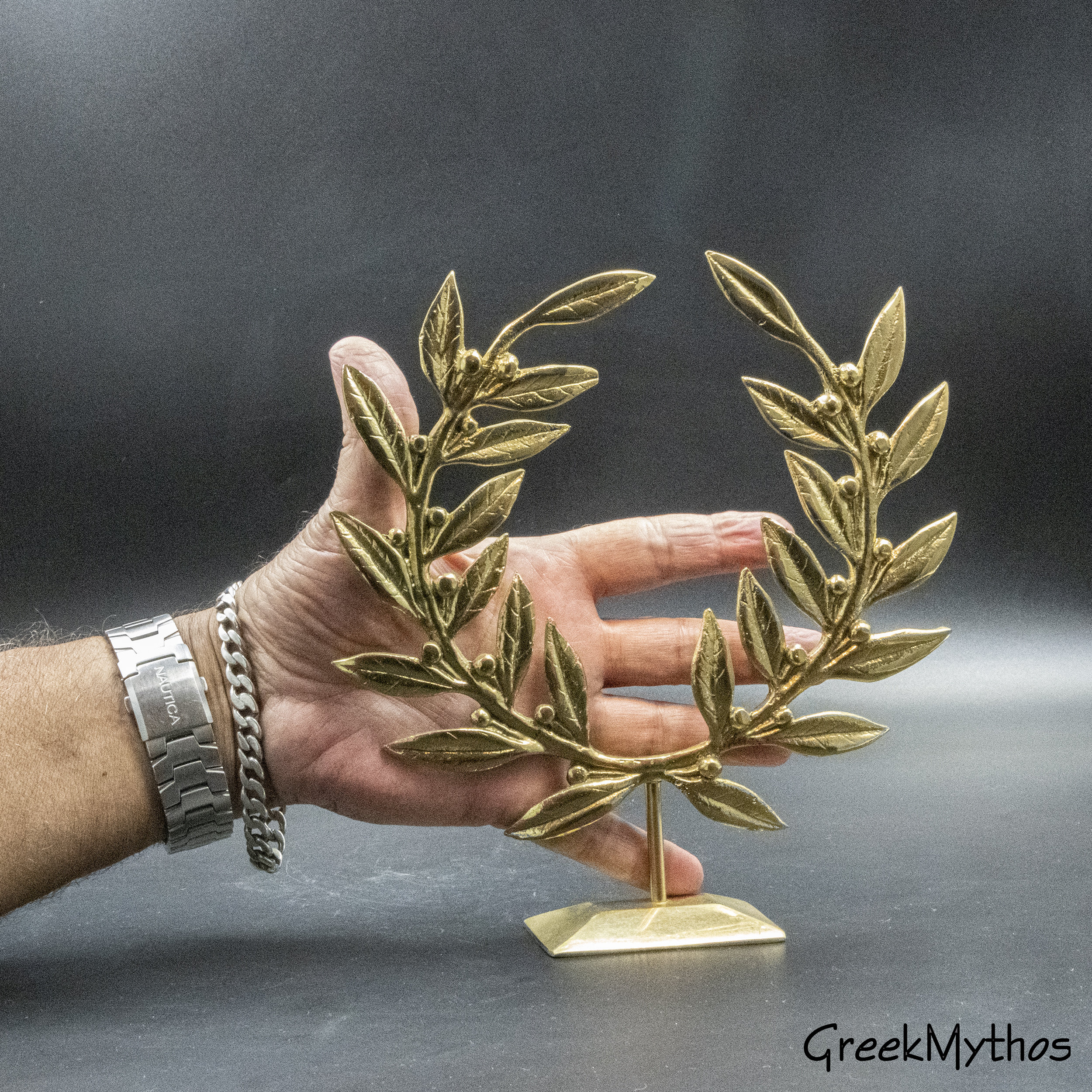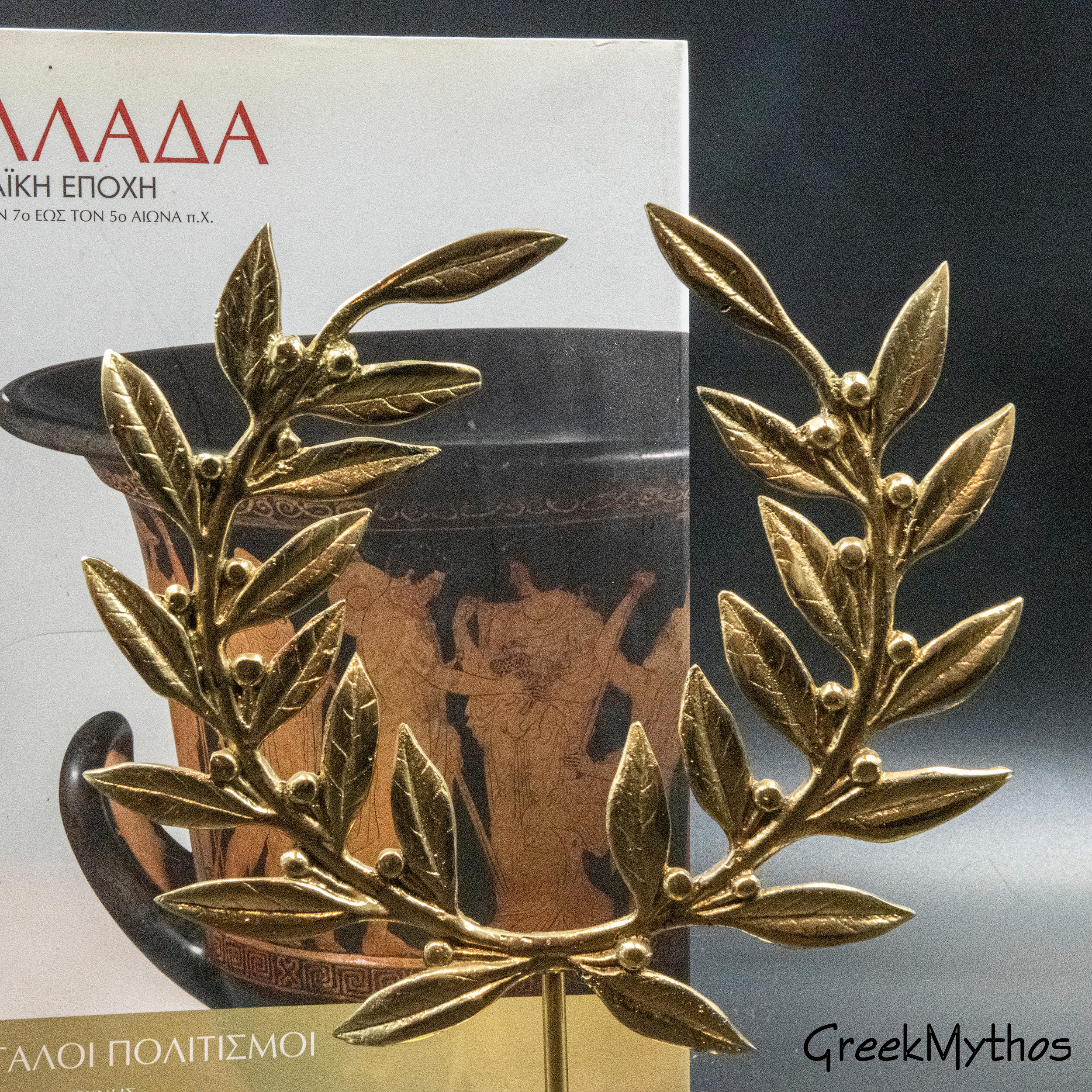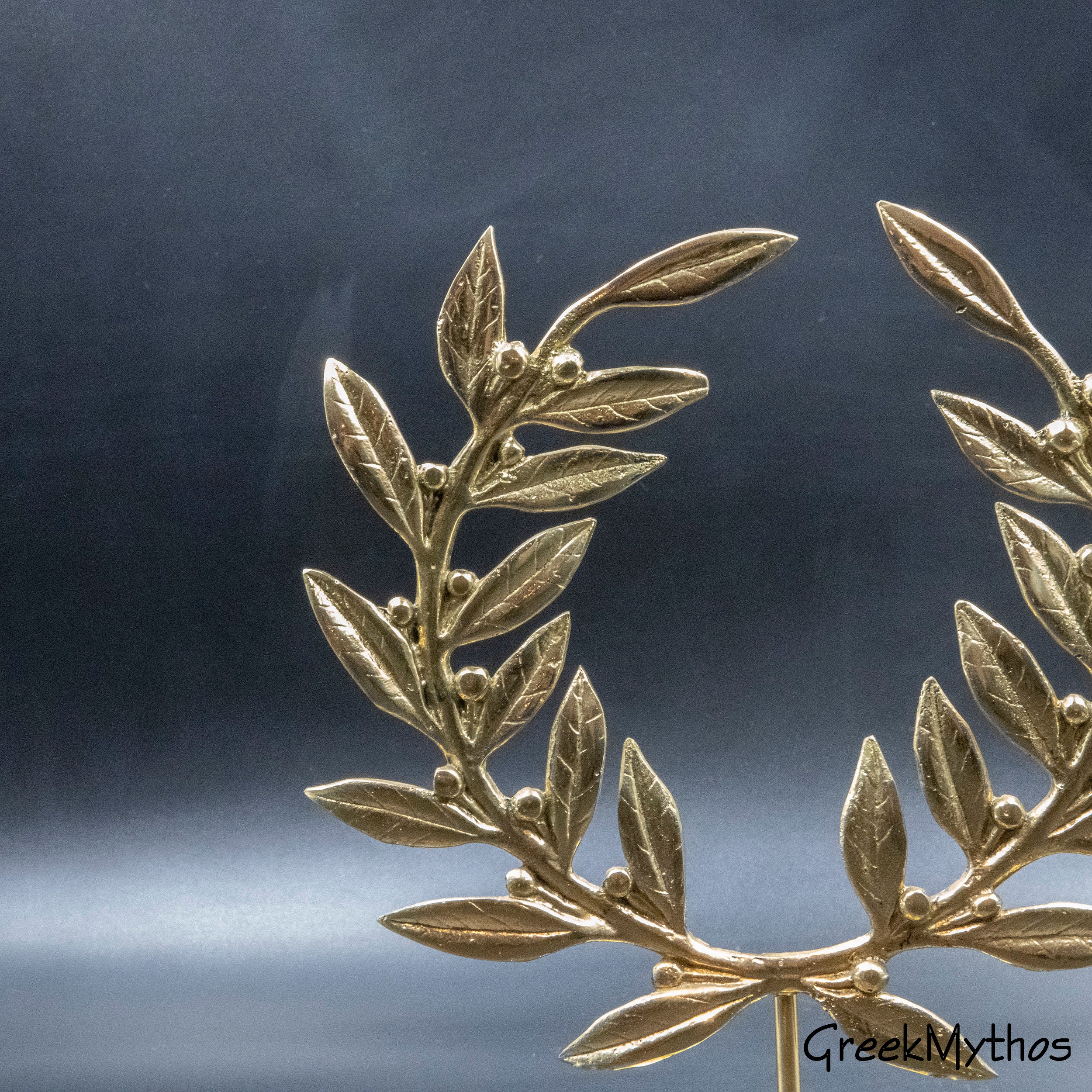 Golden Bronze Olive Wreath on Base, Metal Art Wreath, Greek Olympic Games Winner Prize, Kotinos Wreath, Ancient Greece